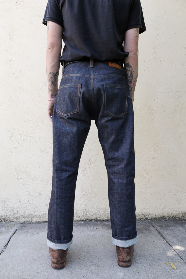 A new and improved version of the first release that started it all. A true straight leg fit in a custom milled, 14.5oz deep indigo selvedge with significant fading potential.